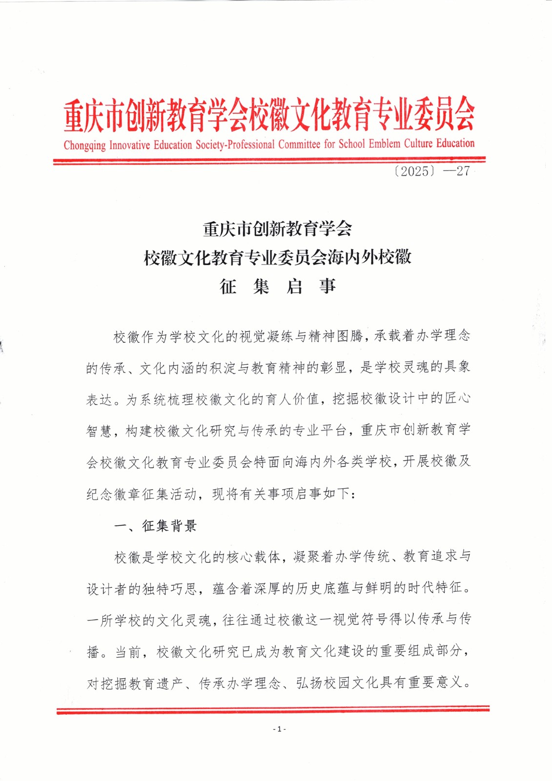 重庆市创新教育学会校徽文化教育专业委员会海内外校徽征集启事.pdf