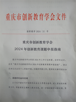 重庆市创新教育学会根据2024年工作计划部署,经研究决定,发布“重庆市创新教育学会2024年创新教育课题申报指南”,请会员单位及会员个人积极申报。为做好申报工作,现将有关事项通告如下: