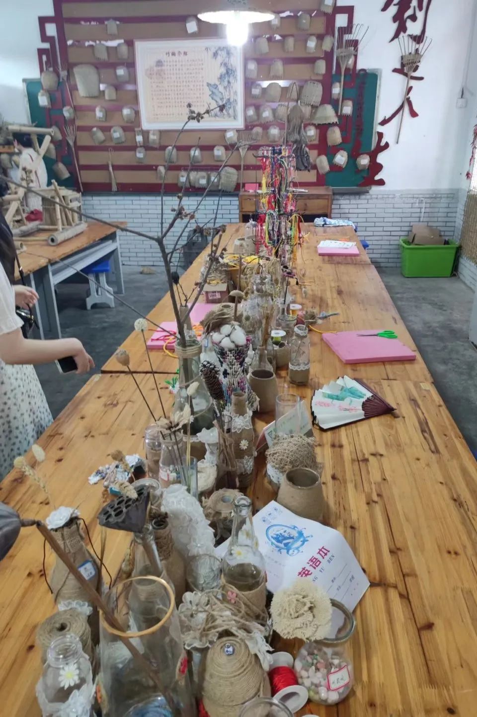在重庆市合川育才学校何海洋校长的带领下大家又分别参观了育才学校旧址——古圣寺、学校新校址、学校劳动教育基地。在劳动教室里整齐地摆放了学生亲手制作的丝带绣、竹篓、折纸等手工艺品;在学校劳动教育基地里,太空荷花亭亭净植、娇艳欲滴。