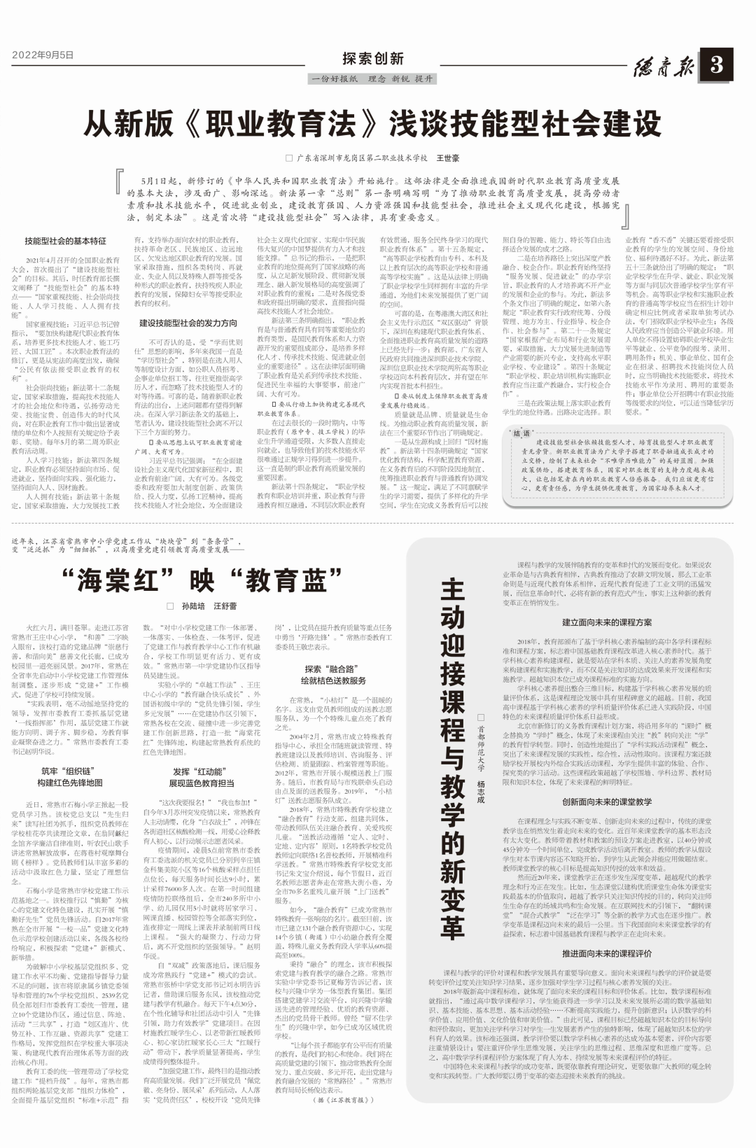 5月1日起,新修订的《中华人民共和国职业教育法》开始施行。这部法律是全面推进我国新时代职业教育高质量发展的基本大法,涉及面广、影响深远。新法第一章“总则”第一条明确写明“为了推动职业教育高质量发展,提高劳动者素质和技术技能水平,促进就业创业,建设教育强国、人力资源强国和技能型社会,推进社会主义现代化建设,根据宪法,制定本法”。这是首次将“建设技能型社会”写入法律,具有重要意义。