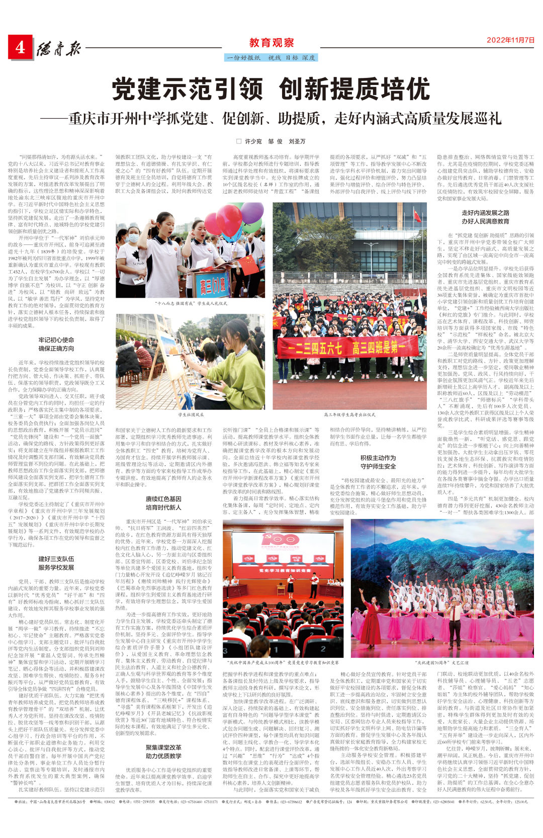 ——重庆市开州中学抓党建、促创新、助提质,走好内涵式高质量发展巡礼