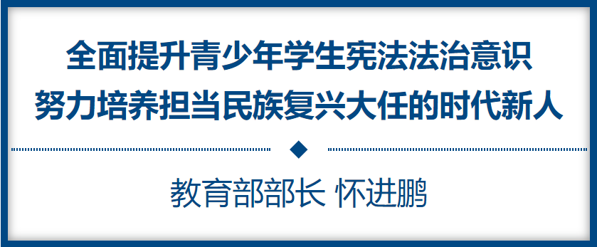 日前,“弘扬宪法精神,加强宪法实施,为强国建设、民族复兴提供宪法保障”座谈会举行。教育部部长怀进鹏在座谈会上发言。《人民日报》12月7日整版刊发座谈会发言摘编。一起来看怀进鹏部长的发言《全面提升青少年学生宪法法治意识 努力培养担当民族复兴大任的时代新人》。