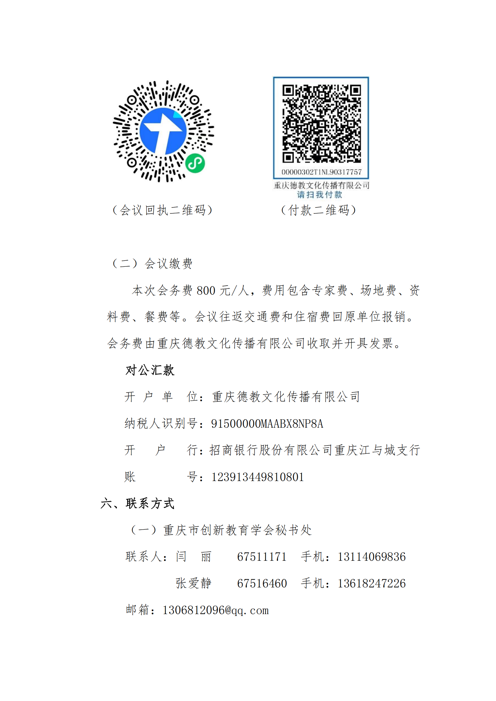 本次会务费800元/人,费用包含专家费、场地费、资料费、餐费等。会议往返交通费和住宿费回原单位报销。会务费由重庆德教文化传播有限公司收取并开具发票。