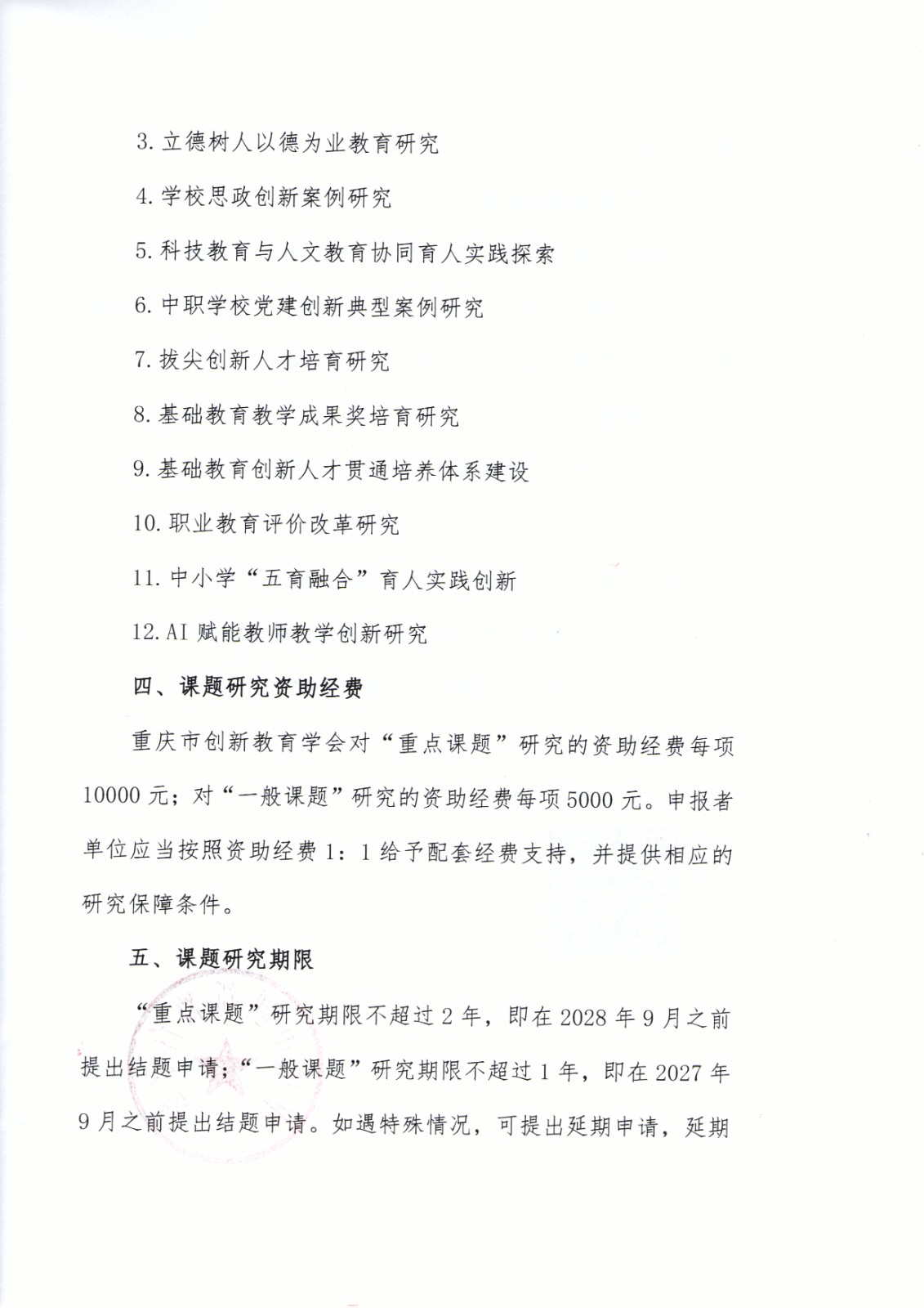 重庆市创新教育学会对“重点课题”研究的资助经费每项10000元;对“一般课题”研究的资助经费每项5000元。申报者单位应当按照资助经费1:1给予配套经费支持,并提供相应的研究保障条件。